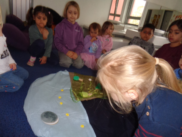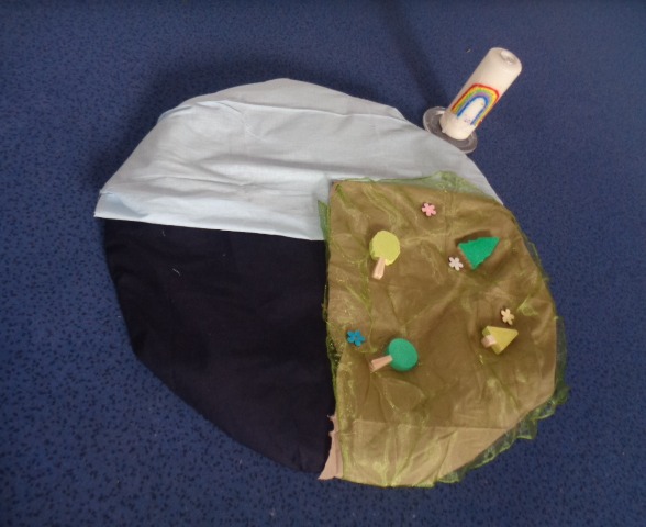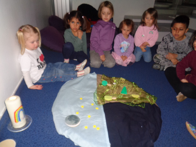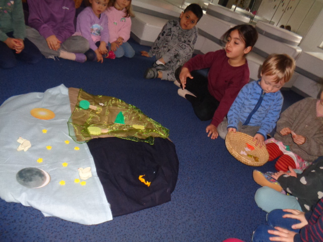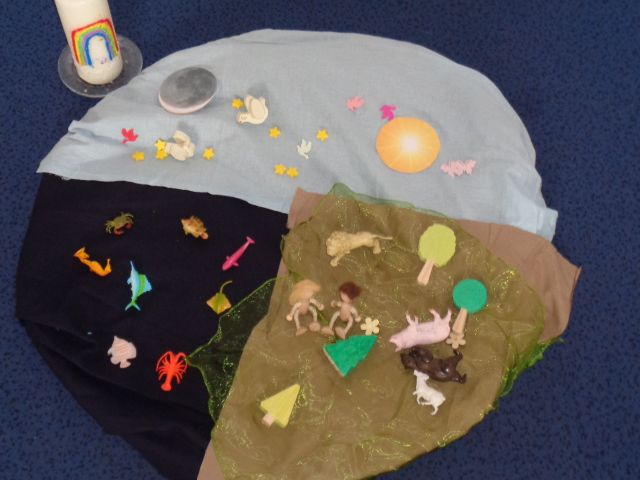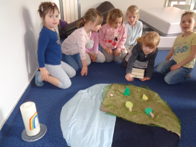 In der Bibelbande haben die Kinder an aufeinanderfolgenden Tagen die Schöpfunsgeschichte gehört und erfahren. Das Staunen über die Natur und die Wertschätzung für das Leben wurden im Legen von Schöpfungskreisen spürbar. Mit Tüchern, Steinen, Figuren und Symbole wurden die jeweiligen Schöpfungstage verdeutlicht.